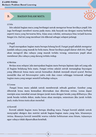 jumlah cahaya yang masuk ke bola mata. Besar kecilnya pupil diatur oleh iris. Pupil