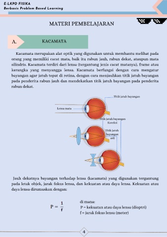 pada letak objek, jarak fokus lensa, dan kekuatan atau daya lensa. Kekuatan atau