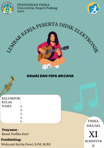PENDIDIKAN FISIKA Universitas Negeri Padang 2023 LEMBAR KERJA PESERTA DIDIK ELEKTRONIK DAWAI DAN PIPA ORGANA KELOMPOK: KELAS : NAMA :1. 2. 3. 4. 5. FISIKA SMA/MA Penyusun : Rensi Nofika Duri XI Pembimbing: SEMESTER Wahyuni Satria Dewi, S.Pd, M.Pd II