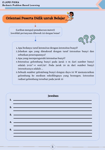 4. Intensitas gelombang bunyi pada jarak 5 m dari sumber bunyi