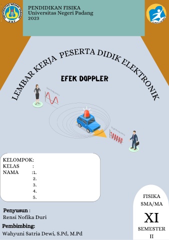 PENDIDIKAN FISIKA Universitas Negeri Padang 2023 EFEK DOPPLER LEMBAR KERJA PESERTA DIDIK ELEKTRONIK KELOMPOK: KELAS : NAMA :1. 2. 3. 4. 5. FISIKA SMA/MA Penyusun : Rensi Nofika Duri XI Pembimbing: SEMESTER Wahyuni Satria Dewi, S.Pd, M.Pd II