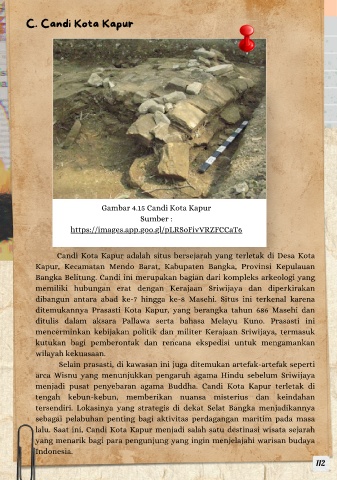 lalu. Saat ini, Candi Kota Kapur menjadi salah satu destinasi wisata sejarah