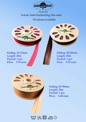 3ULFHOLVW $UWLFOH 6DWLQ ELDVELQGLQJ P UHHOV FRORXUV DYDLODEOH IROGLQJ PP IROGLQJ PP /HQJWK P /HQJWK P 3DFNHG SFV 3DFNHG SFV 3ULFH HXUR 3ULFH HXUR IROGLQJ PP /HQJWK P 3DFNHG SFV 3ULFH HXUR