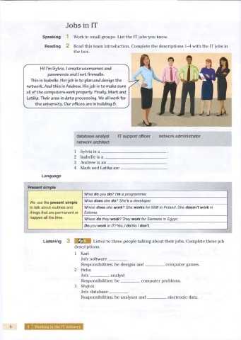 Reading 2 Read his eam ntroduction. Complete he escriptions 1-4 with the IT jobs n