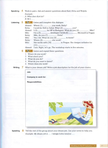 Betty: 1 w o r k for Dell n Dubai. What (2) . you?