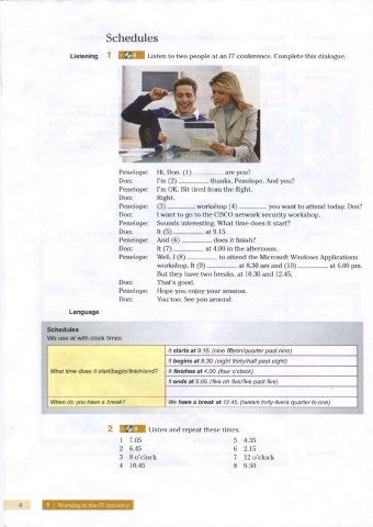 Listening Listen to w o people at an IT conference. Complete his dialogue.