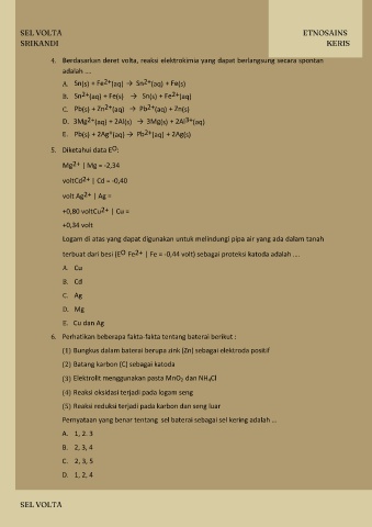 4. Berdasarkan deret volta, reaksi elektrokimia yang dapat berlangsung secara spontan