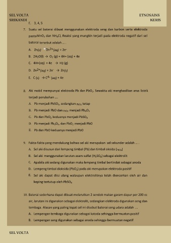 7. Suatu sel baterai dibuat menggunakan elektroda seng dan karbon serta elektroda