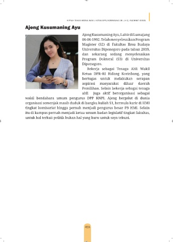 wakil bendahara umum pengurus DPP KNPI. Ajeng bergelut di dunia