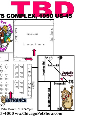 LIBERTYVILLE SPORTS COMPLEX, 1950 US-45 Any Size Booth Available! Starting at 10x7 Show Hours: SAT & SUN 10A-5PM Set Up: FRI 12-5pm Take Down: SUN 5-7pm Chicago Pet Shows—Since 2010 630-385-4000 ww.ChicagoPetShow.com