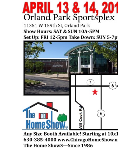 Orland Park Sportsplex 11351 W 159th St, Orland Park Show Hours: SAT & SUN 10A-5PM Set Up: FRI 12-5pm Take Down: SUN 5-7pm Any Size Booth Available! Starting at 10x10 630-385-4000 www.ChicagoHomeShow.net The Home ShowS—Since 1986