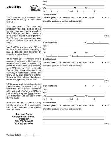 literature with no intention to buy THE HOME SHOW® Dt _______/________/________