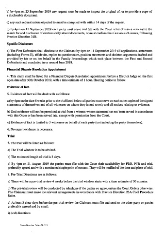 c) By 4pm on 21 August 2019 the parties must file with the Court their availability for FDR, PTR and trial,