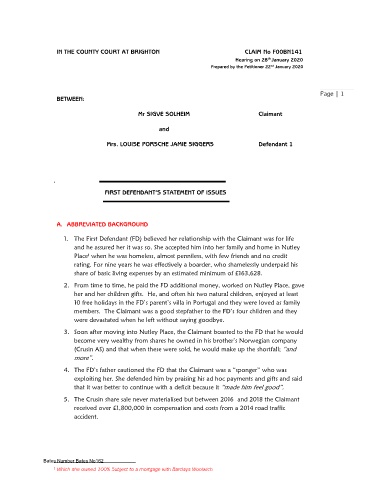 1. The First Defendant (FD) believed her relationship with the Claimant was for life