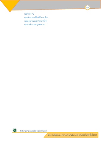 163 กลุ&มวัยทํางาน กลุ&มประชาชนทั่วไปที่มีภาวะเสี่ยง กลุ&มผู-สูงอายุและผู-ปhวยโรคเรื้อรัง กลุ&มคนพิการและทุพพลภาพ สํานักงานสาธารณสุขจังหวัดอุบลราชธานี คู มือการปฏิบัติงานกองทุนหลักประกันสุขภาพในระดับท%องถิ่นหรือพื้นที่ 2563