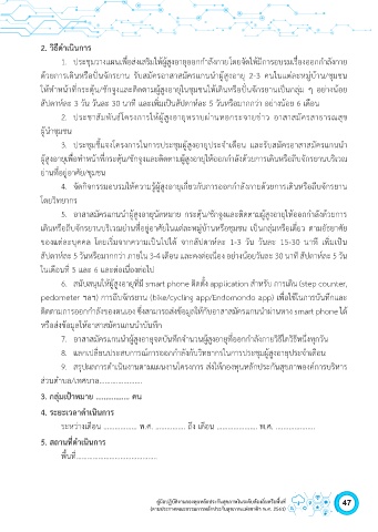 ให้ท�ำหน้ำที่กระตุ้น/ชักจูงและติดตำมผู้สูงอำยุในชุมชนให้เดินหรือปั่นจักรยำนเป็นกลุ่ม ๆ อย่ำงน้อย