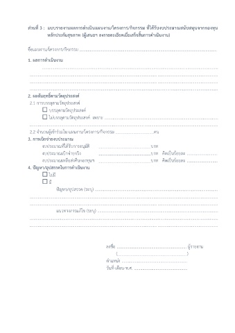 ส่วนที่ 3 : แบบรายงานผลการด าเนินแผนงาน/โครงการ/กิจกรรม ที่ได้รับงบประมาณสนับสนุนจากกองทุน