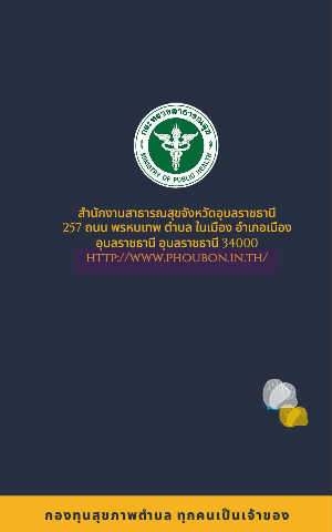 สํานักงานสาธารณสุขจังหวัดอุบลราชธานี 257 ถนน พรหมเทพ ตําบล ในเมือง อําเภอเมือง อุบลราชธานี อุบลราชธานี 34000 http://www.phoubon.in.th/ กองทุนสุขภาพตําบล ทุกคนเป นเจ้าของ