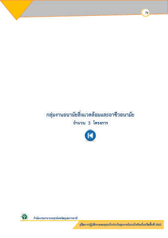 79 กลุ่มงำนอนำมัยสิ่งแวดล้อมและอำชีวอนำมัย จ ำนวน 3 โครงกำร ส ำนักงำนสำธำรณสุขจังหวัดอุบลรำชธำนี คู่มือกำรปฏิบัติงำนกองทุนหลักประกันสุขภำพในระดับท้องถิ่นหรือพื้นที่ 2563