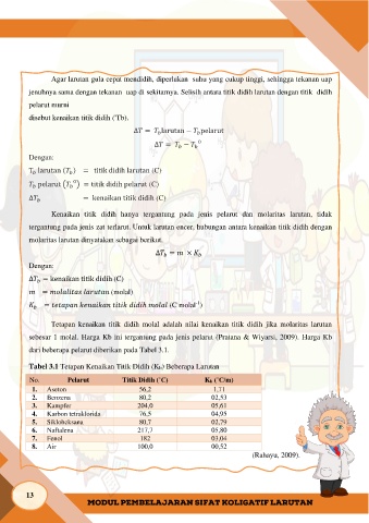 sebesar 1 molal. Harga Kb ini tergantung pada jenis pelarut (Pratana & Wiyarsi, 2009). Harga Kb
