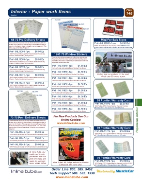 1971 Pontiac (All Models) GTO, Firebird Dealer Pre-delivery Pn# - INL11951 -1pc $4.50 Ea We do over 30 events a year.