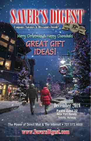 Coupons, Savings & Discounts Inside! Merry Christmas & Happy Chanukah! GREAT GIFT IDEAS! December 2019 Pasco Zone 32 New Port Richey, Trinity, Holiday The Power of Direct Mail & The Internet • 727.573.4600 www.SaversDigest.com