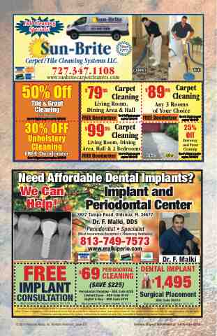 The patient & any other person responsible for payment has a right to refuse to pay, cancel payment or be reimbursed for payment for any other services or treatment which is performed as a result of & within 72 hours of responding to the advertisement for the free, discounted fee or reduced fee service, examination or treatment. Fees quoted are minimum fees only. Not valid w/ insurance. One per family. * Extra fee for same day services & for implants. Additional may be required at regular Fees. Endodontist & Periodontist are licensed Florida Associates