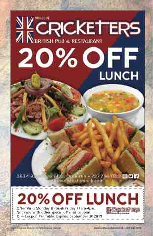 Offer Valid Monday through Friday 11am-4pm. Not valid with other special offer or coupon. One Coupon Per Table. Expires: September 30,2019 © 2019 Response Media, Inc. All Rights Reserved. Issue 323 Savers Digest Advertising: 1-800-934-4378