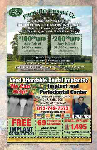 The patient & any other person responsible for payment has a right to refuse to pay, cancel payment or be reimbursed for payment for any other services or treatment which is performed as a result of & within 72 hours of responding to the advertisement for the free, discounted fee or reduced fee service, examination or treatment. Fees quoted are minimum fees only. Not valid w/ insurance. One per family. * Extra fee for same day services & for implants. Additional may be required at regular Fees. Endodontist & Periodontist are licensed Florida Associates