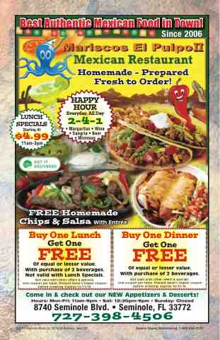 One coupon per table. Present Saver’s Digest coupon before ordering. Expires 10/11/19.
