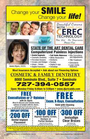 The patient & any other person responsible for payment has a right to refuse to pay, cancel payment or be reimbursed for payment for any other services or treatment which is performed as a result of & within 72 hours of responding to the advertisement for the free, discounted fee or reduced fee service, examination or treatment. Fees quoted are minimum fees only. Not valid w/ insurance. One per family. * Extra fee for same day services & for implants. Additional may be required at regular Fees. Endodontist & Periodontist are licensed Florida Associates