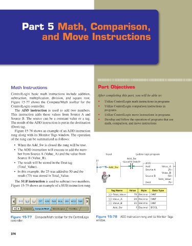 Figure 15-77 Compute/Math toolbar for the ControlLogix Figure 15-78 ADD instruction rung and its Monitor Tags