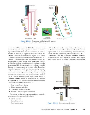 actuator directly into I/O modules. Figure 14-38 shows DeviceNet uses the Common Industrial Protocol,