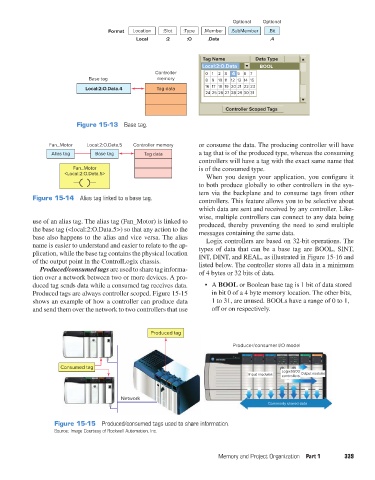 plication, while the base tag contains the physical location INT, DINT, and REAL, as illustrated in Figure 15-16 and