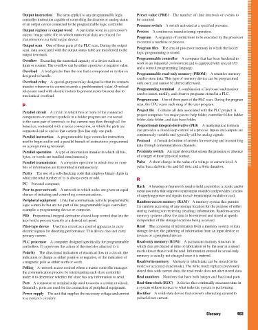 Output register or output word A particular word in a processor’s Process A continuous manufacturing operation.