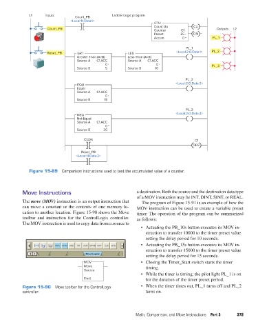 Figure 15-89 Comparison instructions used to test the accumulated value of a counter.