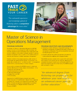 position within a manufacturing or services company. begin this program in any of our four terms. The MSOM program