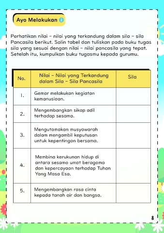 Pancasila berikut. Salin tabel dan tuliskan pada buku tugas