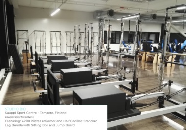 STUDIO BIO Kauppi Sport Centre - Tampere, Finland kauppisportscenter.fi Featuring: A2RII Pilates reformer and Half Cadillac Standard Leg Bundle with Sitting Box and Jump Board.