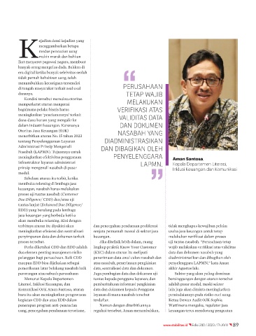 proses tersebut. Jika ditelisik lebih dalam, ruang uji tuntas nasabah. “Perusahaan tetap
