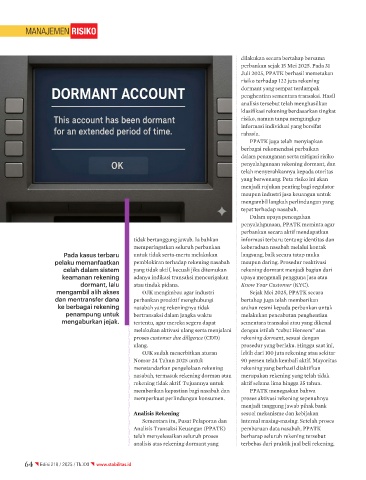 dormant, lalu atau tindak pidana. Know Your Customer (KYC).