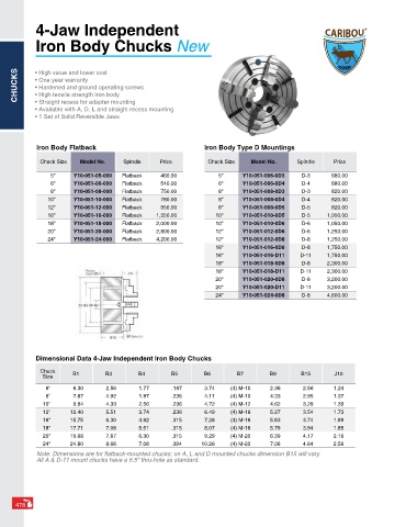 Dimensional Data 4-Jaw Independent Iron Body Chucks