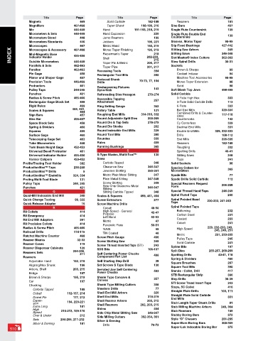 INDEX Mini-Magnetic Base 455-456 Repairman’s Taper 202-203, Slitting Saws 346-348