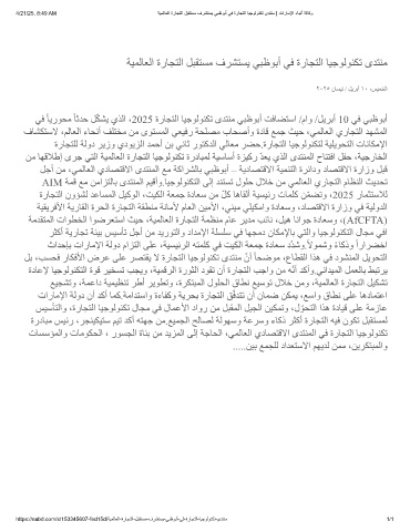 4/21/25, 8:49 AM ﺔﯾﻣﻟﺎﻌﻟا ةرﺎﺟﺗﻟا لﺑﻘﺗﺳﻣ فرﺷﺗﺳﯾ ﻲﺑظوﺑأ ﻲﻓ ةرﺎﺟﺗﻟا ﺎﯾﺟوﻟوﻧﻛﺗ ىدﺗﻧﻣ | تارﺎﻣﻹا ءﺎﺑﻧأ ﺔﻟﺎﻛو