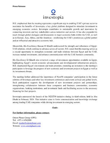 editions of Investopia and other key investment conferences and events at local and global levels.