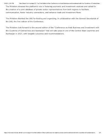 3/4/25, 2:58 PM “Abu Dhabi Communiqué”[1] The First Edition of the Conference on Arab Business and Investment with the Countries of Central Asia…