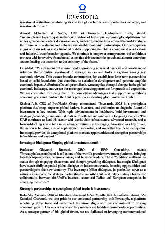 Shaista Asif, CEO of PureHealth Group, commented: "Investopia 2025 is a prestigious