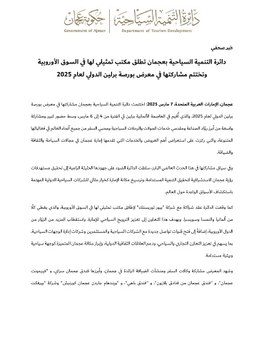 ﺔﺻرﻮﺑ ضﺮﻌﻣ ي ﻓ ﺎﻬﺘﻛرﺎﺸﻣ نﺎﻤﺠﻌﺑ ﺔﻴﺣﺎﻴﺴﻟا ﺔﻴﻤﻨﺘﻟا ةﺮﺋاد ﺖﻤﺘﺘﺧا : 2025 سرﺎﻣ 7 ،ةﺪﺤﺘﻤﻟا ﺔﻴﺑﺮﻌﻟا تارﺎﻣﻹا ،نﺎﻤﺠﻋ