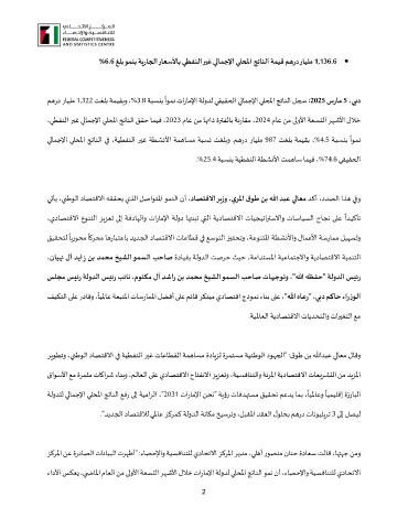 ﻢه رد رﺎﻴﻠﻣ 1,322 ﺖﻐﻠﺑ ﺔﻤﻴﻘ� و ، % 3.8 ﺔﺒﺴنﺑ اﻮﻤﻧ تارﺎﻣﻹا ﺔﻟوﺪﻟ ﻲﻘﻴﻘح�ا ��ﺎﻤﺟﻹا ��ح�ا ﺞﺗﺎﻨﻟا ﻞج� : 2025 سرﺎﻣ 5 ،ﻲ�د