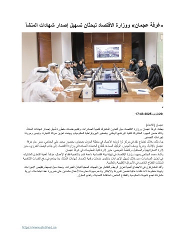 ،أشنملا تاداهش رادصإ لهسُت ةروطتم تامدخ ميدقتو ،تارداصلا ةيمنتل كرتشملا نواعتلا لبس داصتقلاا ةرازوو نامجع ةفرغ تثحب